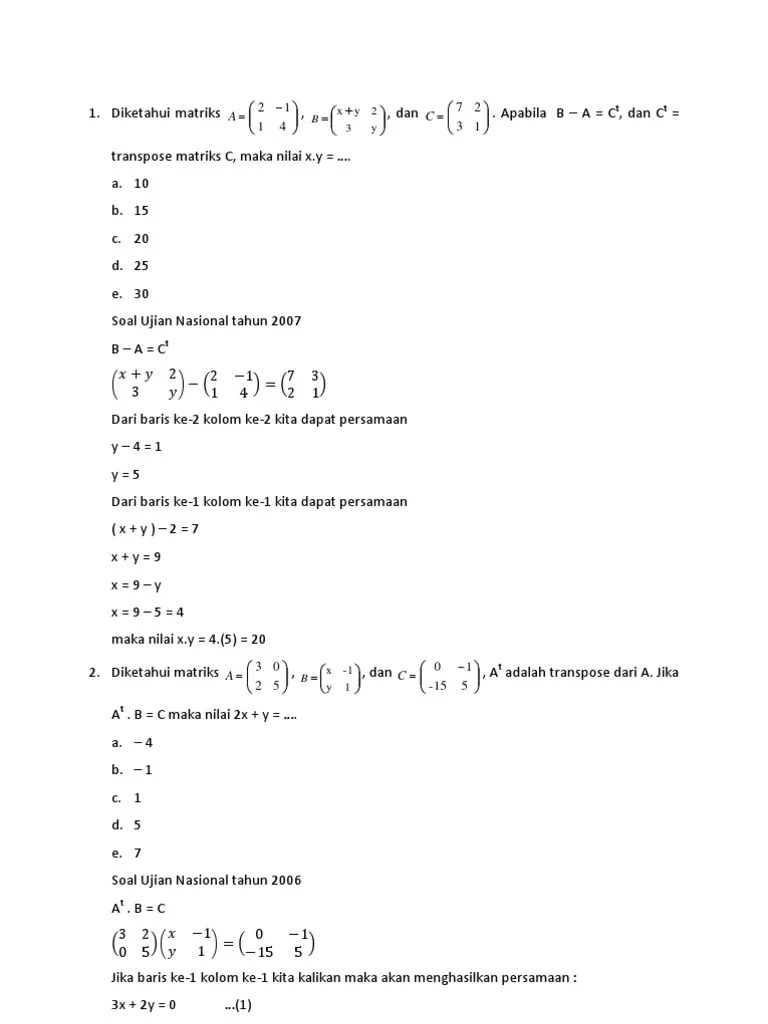 Pembahasan matriks soal nomor 20 un . Pembahasan matriks soal nomor 20 un matematika sma tahun pelajaran 2009/2010 (ips). 60+ soal dan pembahasan matematika dasar sma matriks. Pembahasan tkpa matematika dasar sbmptn 2016 (kode soal 321) (2) . Atau smmptn (seleksi mandiri masuk perguruan tinggi negeri) dan un (ujian nasional).